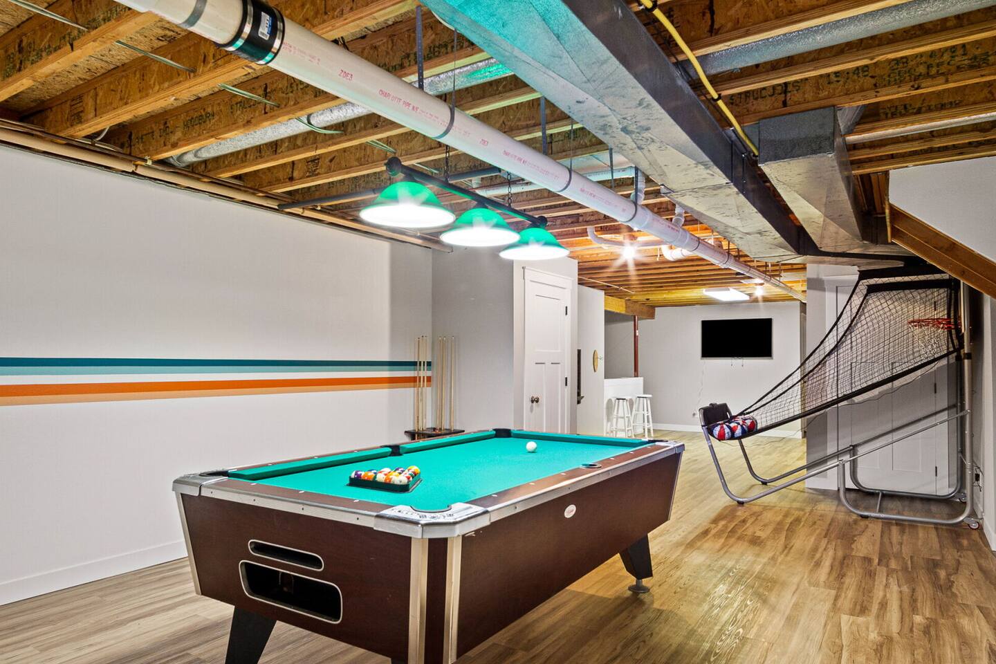 2 Miles from Lake Altoona Beach & Boat Landing 3 Miles from Oakleaf Surgical Hospital 4 Miles from River Prairie 7 Miles from Florian Garden Center 7 Miles from Big Fall County Park 7 Miles from The Pablo Center 8 Miles from Lowes Creek County Park The main floor of our accessible Family Fun Hideaway is designed with your comfort in mind. A 45-inch-wide ramp through the garage ensures easy entry, while 35-inch doorways accommodate wheelchairs. A main floor bedroom with a king bed and a fully equipped bathroom, featuring a walk/wheel-in shower and safety grab bars, ensures accessibility for all. Additionally, you'll find two more bedrooms, a second full bathroom, and a convenient half bathroom. The main level also boasts a fully stocked kitchen, dining area, laundry room, and a delightful 4 season room with views of the scenic backyard. Venture to the lower level for even more entertainment options. A family room is perfect for movie nights, while a dedicated kids' playroom keeps the little ones entertained. Another bedroom with two full-size beds and a full bathroom provides ample space for everyone. And don't miss the amazing game room, sure to delight the whole family. In our well-equipped kitchen, you'll find everything you need for cooking, along with a starter pack of coffee, creamer, sugar, and tea. Choose from a standard coffee pot, Keurig, or French-press for your morning brew, and make use of our large blender and toaster. You will NOT run out of entertainment options with our collection of books, board games, and toys for kids, ensuring there's never a dull moment at Family Fun Hideaway.