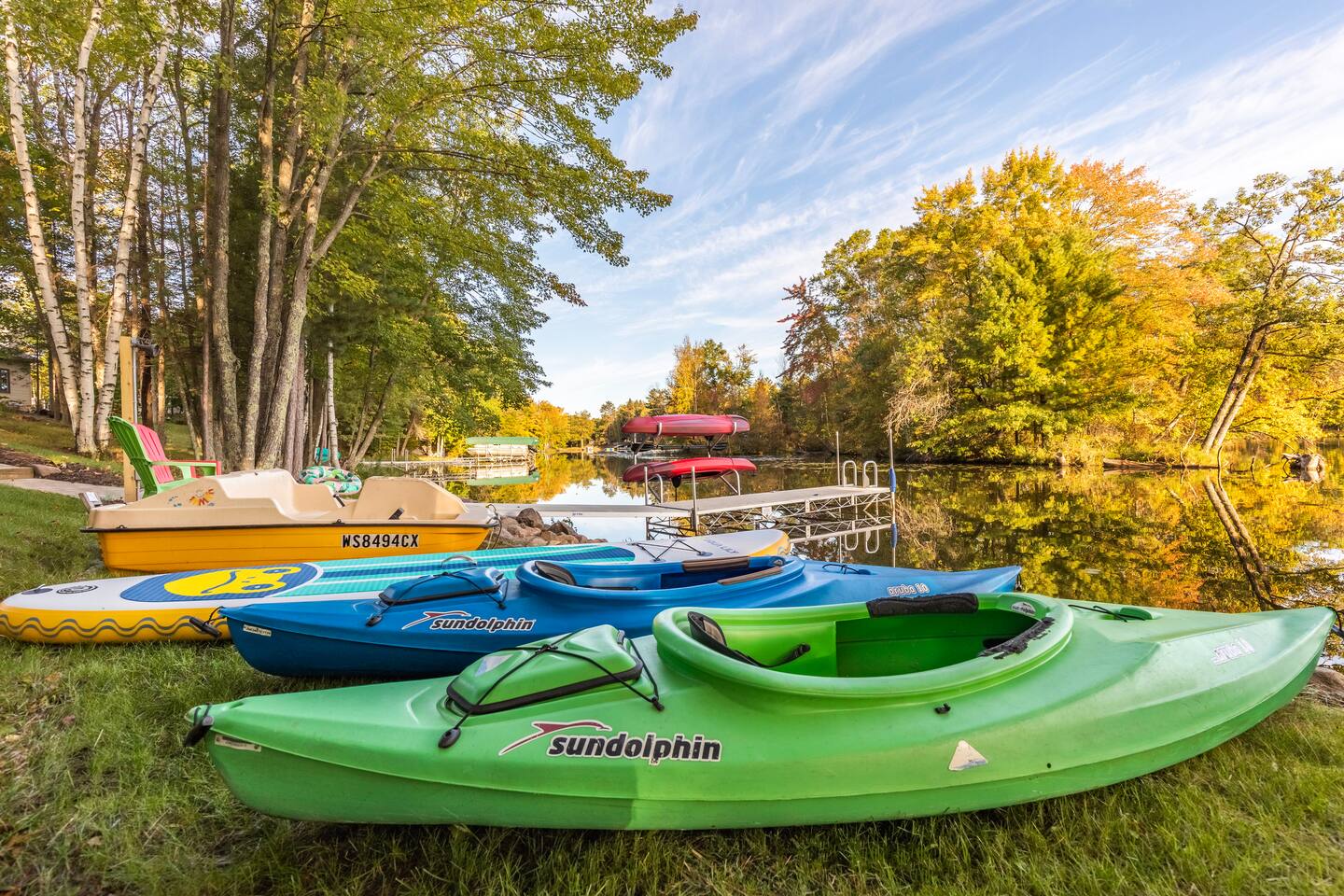 We offer 8 standard orange life jackets available for our guests to use. We recommend bringing your own if you would like a specific size or style especially for children. We do NOT provide charcoal or lighter fluid for the outside grill or firewood for the outdoor firepit. (There may be some left behind from other guests) NO Animals on property. Chippewa County Tourist Rooming License ID # AKRR-CD6QN7