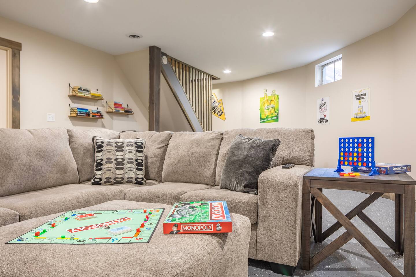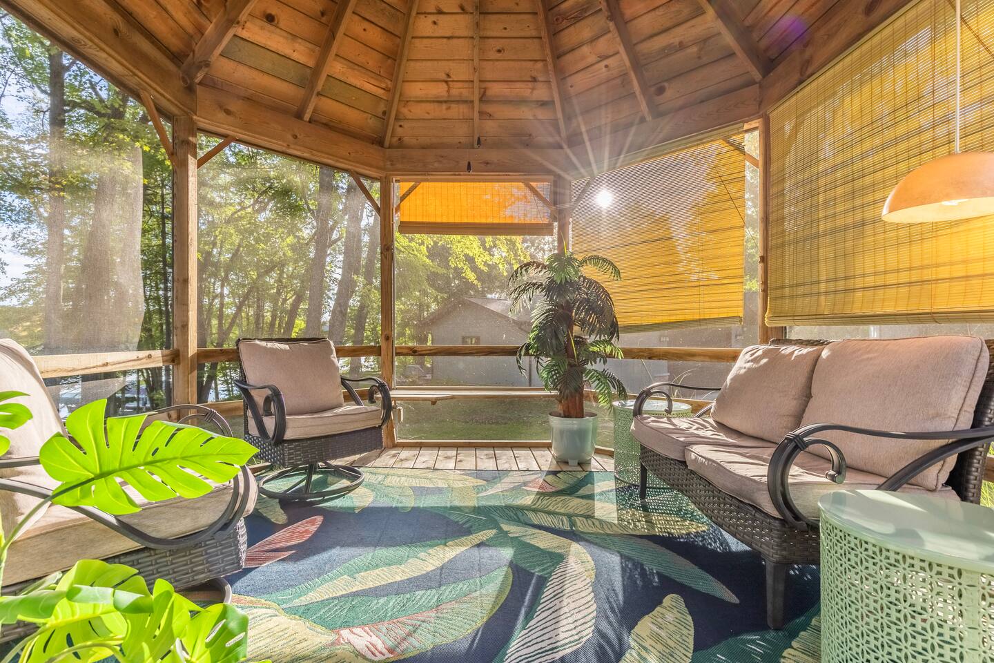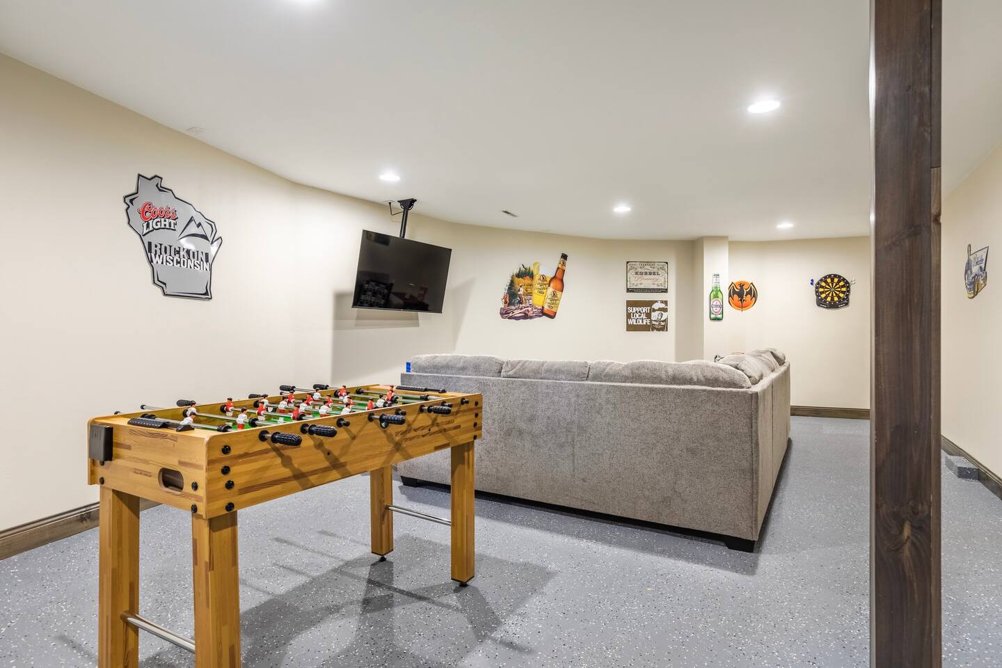 The main floor has a private bedroom with a king bed. The second level has a semi-private bedroom with a queen bed and loft area with two queen size beds. The couch on the main floor living room also pulls out to a queen size sofa bed. Enjoy the lower-level game and hang out area with an ample number of books, board games, foosball table and basketball arcade game. Our kitchen is stocked with all the cooking supplies you should need. We offer a starter pack of coffee, creamer, half & half, sugar and tea. We have a standard coffee pot (12 cup), Keurig, French-press and tea pot. We offer 4 single kayaks, 1 paddle board, 1 paddle boat & assorted water floaties for guests to use along with 8 standard size life jackets. We have a 20ft Bennington Pontoon with a 50-horse motor that fits 13 people/1800 pounds available for rent in the summer season. Can be rented per day or per stay. Please message host for more details. (See pictures in listing) There is a 16 ft. dock you can use to dock your boat. Property is 1.2 miles from Wayside Boat Landing. 25ftx15ft parking spot at the house for a trailer. Ample seating outside with an 8-person picnic table, gazebo seating and chairs around the firepit. Please note: due to the high traffic of visitors during peak seasons, Holcombe's cell service is VERY limited, especially on the weekends. We have great WIFI access for you to connect to right away but calling is limited unless it is a video call.