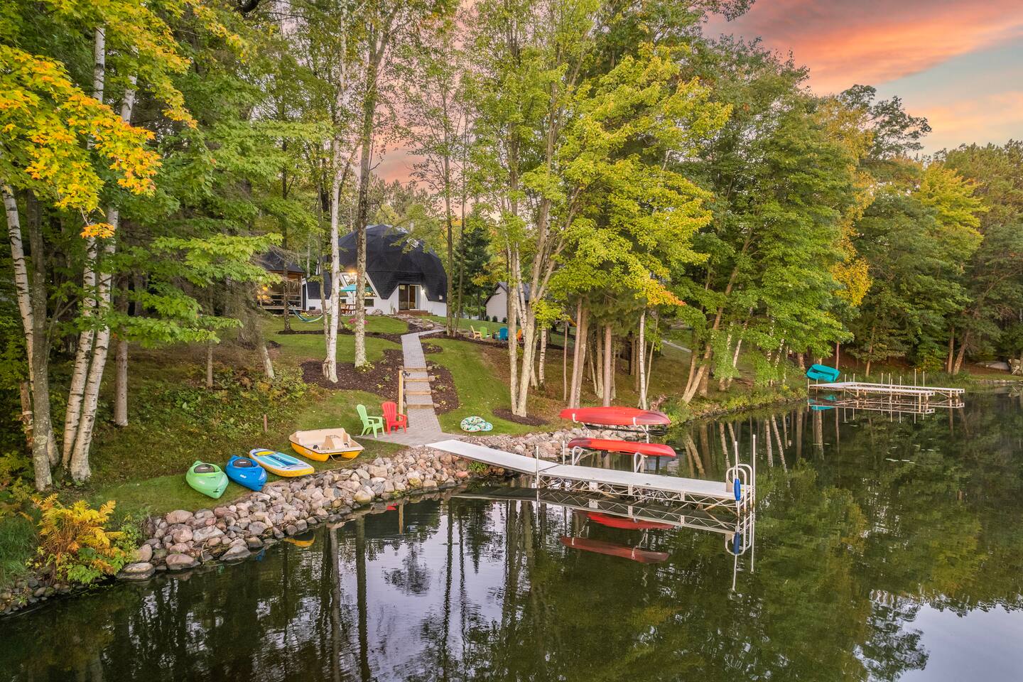Not just an ordinary vacation; come experience The Dome Home in Northern WI. This unique, fully renovated Dome Home offers bright & airy feels with a picturesque panoramic lake view. Located directly on Lake Holcombe (2,881 acre lake) with multiple bars & restaurants to visit by boat or vehicle. Enjoy your stay during all Wisconsin seasons; summer boating, crisp fall colors & cozy winter nights by the fireplace.